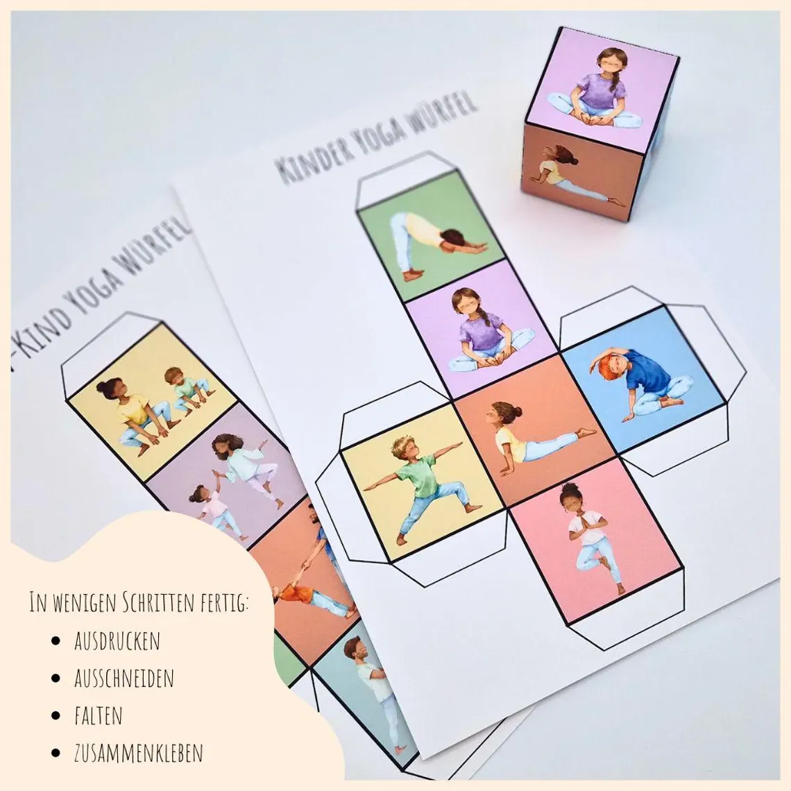 Diese liebevoll gestalteten Yoga-Würfel laden Kinder und Eltern dazu ein, sich gemeinsam zu bewegen, zur Ruhe zu kommen und wertvolle Zeit miteinander zu verbringen.